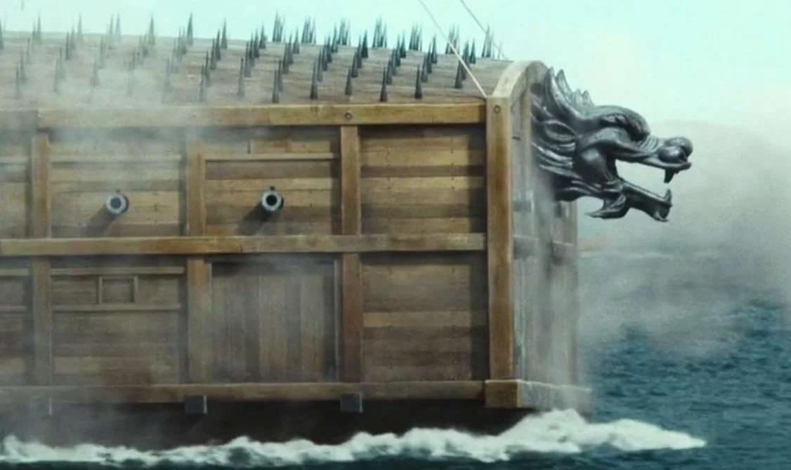 The ship is 거북선 (Geobukseon), a large, fully-enclosed battleship so deadly effective it was used by the Korean navy for five centuries, and a crucial piece in Admiral Yi Sun-sin’s halting of the Japanese invasion.