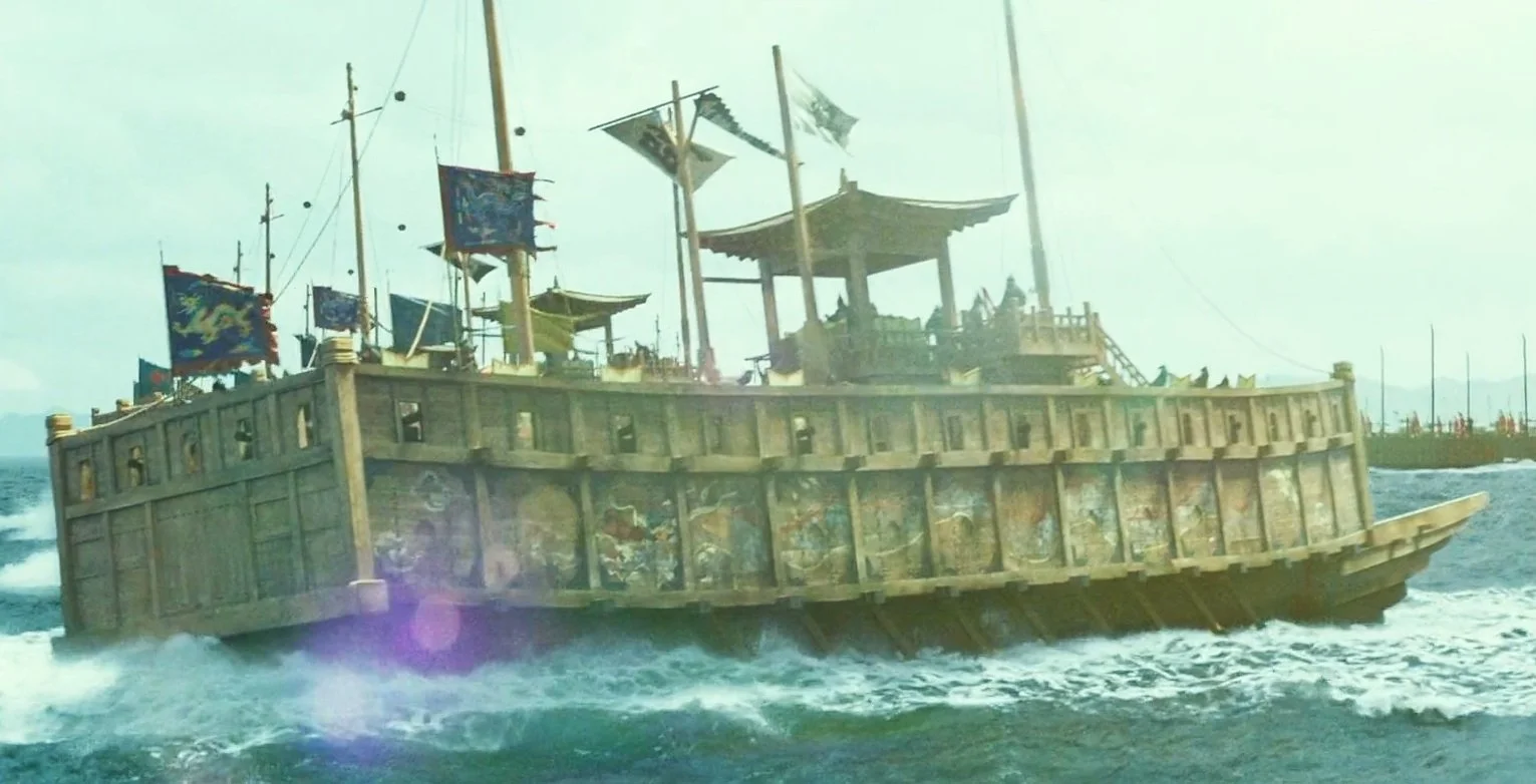 Since the rowers were located between decks, they were better shielded from taking damage, which in turn allowed the Admirals to keep tight control of the ship’s positioning even under heavy fire. Much like its sister ship geobukseon, panokseon was able to turn on its own radius. As shown in the movie (and apparently happened for real too), this ability provides a huge tactical advantage, since Yi Sun-sin uses it in tandem with 학익진 (hakikjin), the Crane Wing Formation, to stop the Japanese naval advance.