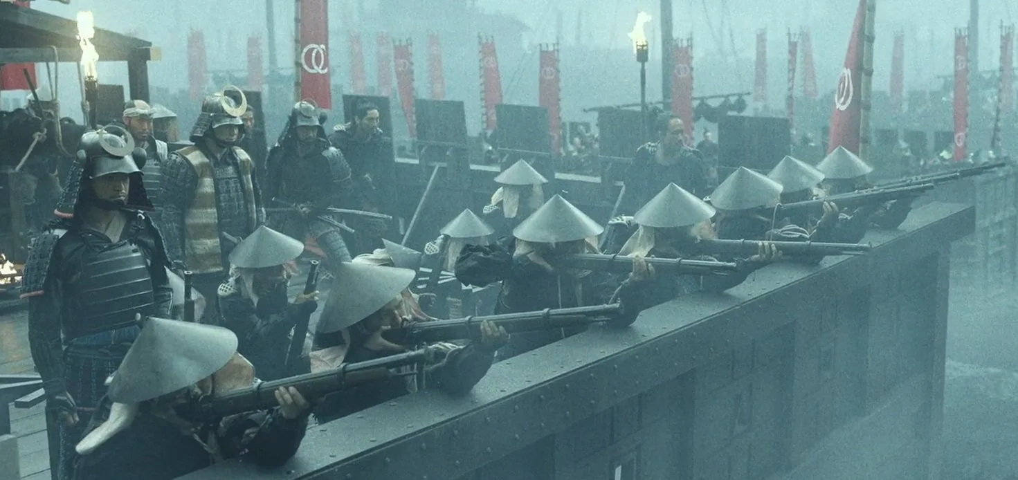 The key strategy of gunners facing off against Admiral Yi’s fleet in Hansan: Rising Dragon was the use of multiple firing lines to not only bombard the ships with a volley of shots (which forces the enemies on deck to take cover, disabling them from counter attacking or protecting the topdeck from boarding) but also so they can continuously fire the volley without much delay. One line fires until empty, then the next line steps up while the second reloads. And sure, a single gunshot might not kill you, but in this period of history death by infection was extremely common, so it kind of works either way.