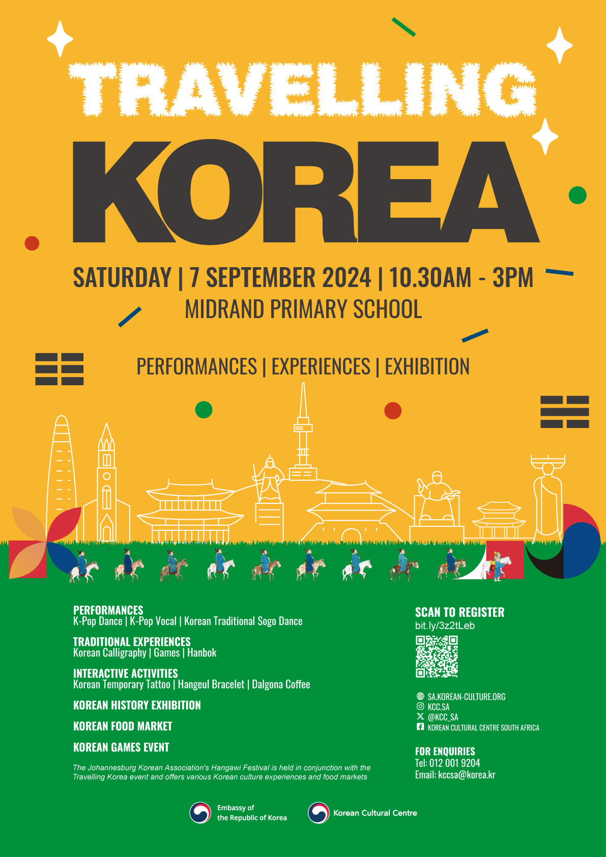 Get ready to dive into a day filled with vibrant culture, delicious food, and interactive fun at the Travelling Korea event, held alongside the Johannesburg Korean Association's Hangawi Festival! This festival brings you the best of Korea right here in Johannesburg.