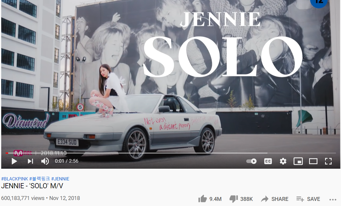 The music video for "Solo," the debut solo track of BLACKPINK member Jennie, has surpassed 600 million views on YouTube, a first for a solo female K-pop artist.