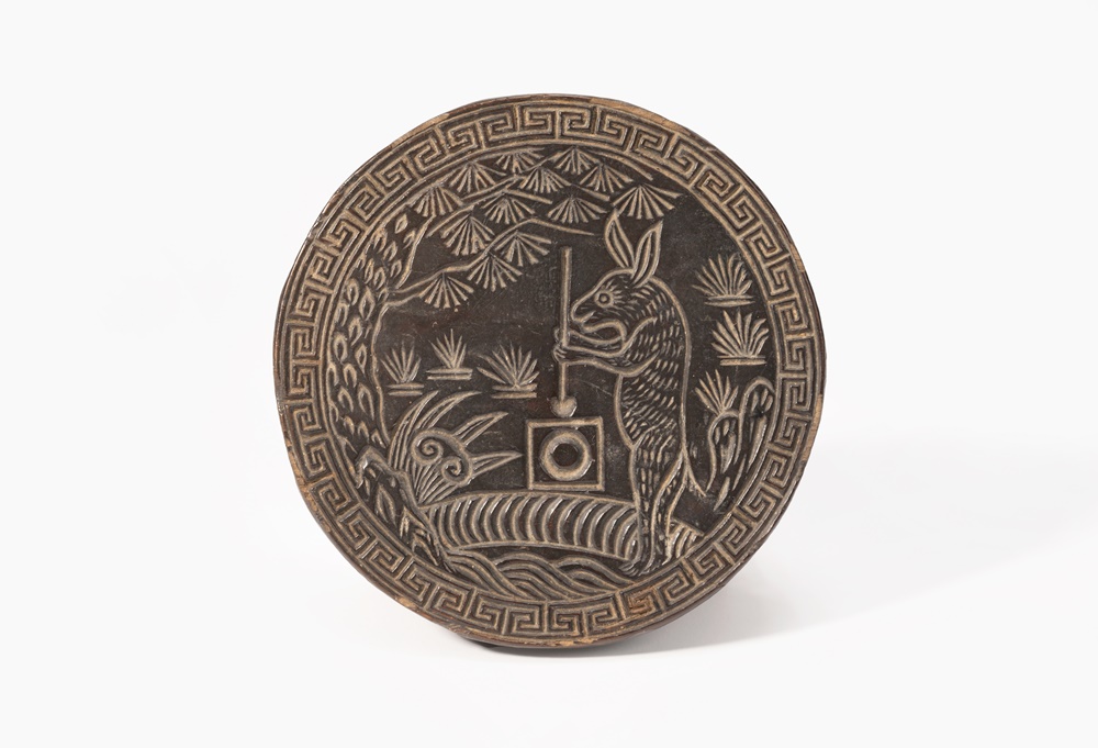 In ancient times, Koreans seeing the moon at night believed that a rabbit pounded rice cake there, thus the furry creature symbolized the spirit of the moon, health and longevity. The photo shows an engraving showing a rabbit making rice cake under an imaginary laurel tree. (National Folk Museum of Korea)