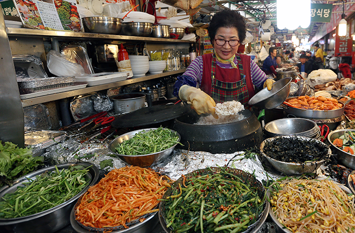 bibimbap in the market for almost 20 years, said, “Recently, we have had more Mainland Chinese tourists. People continue to come here, even late at night.” Seo even offered free pieces of