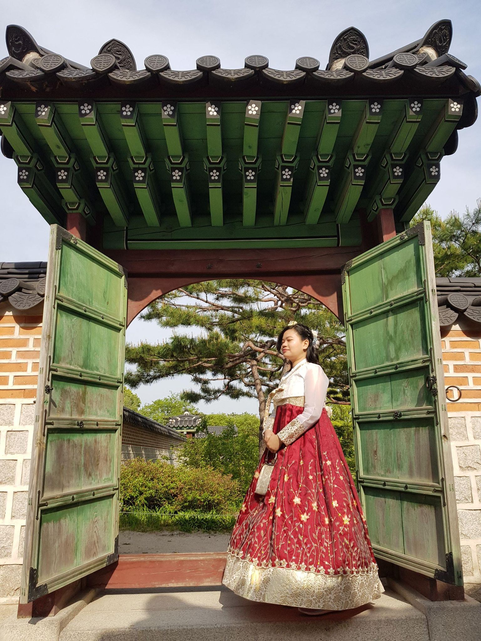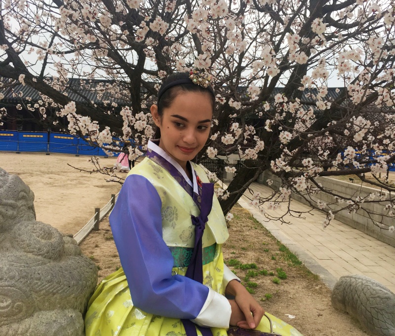 Kris Tiffany Janson wears Hanbok at Seoul's Gyeongbokgung Palace. (Gina Borinaga)
