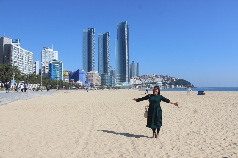 I had a short but relaxing visit to Busan in November 2019 during a leisure trip while attending a workshop in Seoul. Haeundae Beach is popular among tourists because of its cool and refreshing atmosphere. People can hang out with friends and relax by the sea and one can see the beautiful white sand beach and clear blue water right at the entrance. Though it was fall at the time, I enjoyed the sunny and windy weather.