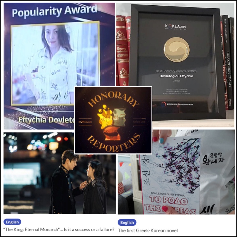 My favorite part of this program is holding interviews with interesting people. I've maintained contact with the people I've interviewed and formed friendships online. I also love my collaborations with other Honorary Reporters and the camaraderie we developed. And I love to inform people about Korean-related events in Greece or elsewhere and to see many Korean exhibitions and events in Greece.