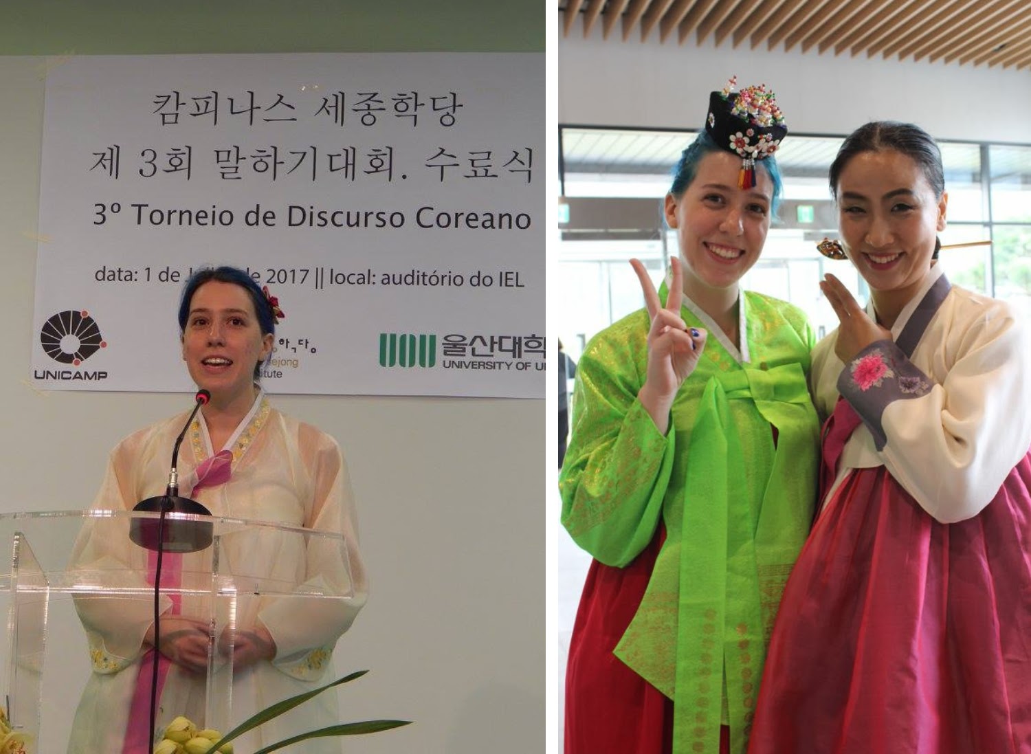 King Sejong Institute in Brazil holds an annual competition for Korean speech and the grand prize winner wins an all-expenses-paid trip to Korea. For me, it was a dream come true, and every effort I made to write and practice the speech was worth it. My first trip to Korea was for a week, and I got to directly experience the culture there. Through the institute's program, I learned traditional Korean dance in the morning and went sightseeing in the afternoon. Our group even went to Jeju Island for three days. I will remember the trip forever.