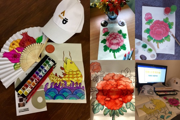 The necessary tools for the workshop such as a ready-to-paint minhwa set was sent to students just before the workshop began to help them get firsthand experience in this craft.
