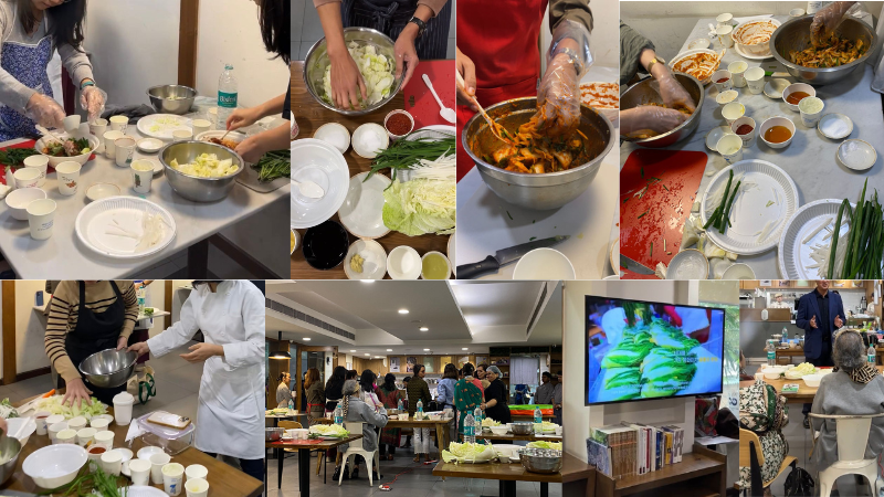 The workshop began with an introduction to kimjang and later had participants make kimchi. Approximately 30-40 enthusiastic spectators observed the process, gaining insights into Korean culinary traditions.