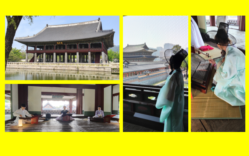 On May 4, I joined "Time Travel to the Joseon Dynasty" at Gyeongbokgung's Gyeonghoeru Pavilion. Tailored for foreign visitors, it offered an exclusive tour of the usually closed pavilion, a traditional venue for guests, led by a guide. Visitors saw actors dressed in Joseon scholar attire and later attended a traditional music performance with stringed instruments.