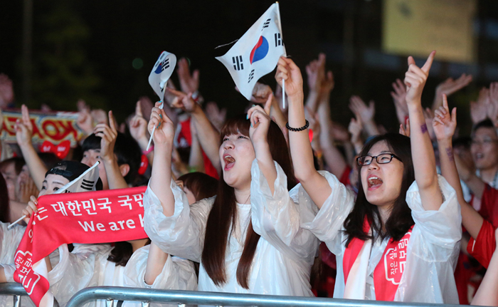 As if responding to the fans' cheers, Korean midfielder Son Heung-min wittingly scored a goal five minutes into the second half, or in the 50th minute of the game. The crowds in the plaza erupted into cheers, hugging each other and crying out, "Korea," even louder.