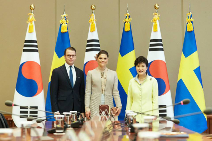 President Park Geun-hye met with Swedish Crown Princess Victoria and her husband Prince Daniel at Cheong Wa Dae on March 24.
